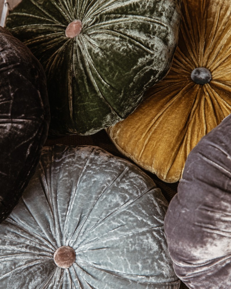 Béatrice Laval a imaginé pour Le Monde Sauvage un coussin rococo à souhait, où la délicatesse du velours de soie est mêlée à la douceur d'un coussin rond et plissé. Le bouton contrasté de capitonnage du milieu apparaît comme un véritable petit bijou. À mixer avec du lin ou du coton, il apporte douceur et raffinement à des matières plus épaisses et est parfait pour apporter une touche de couleur sur un canapé ou un lit. Un bonbon coloré à placer partout !