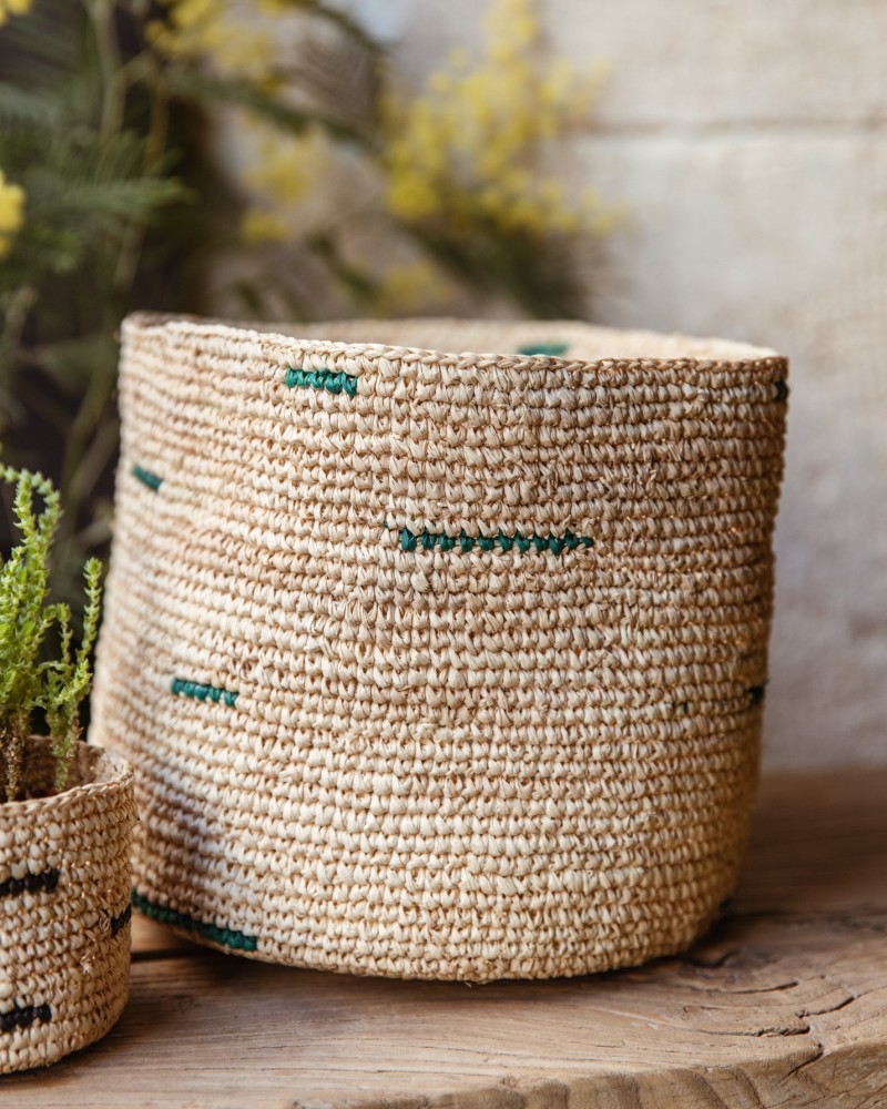 Naturels et tissés à la main, les paniers en raphia sont idéals pour apporter une belle touche de matière à votre intérieur. Ici déclinés en version mini, ils sont parfaits en petit cache-pot avec un cactus ou une autre plante. En vide poche, on les adore aussi !