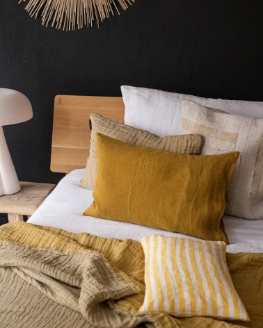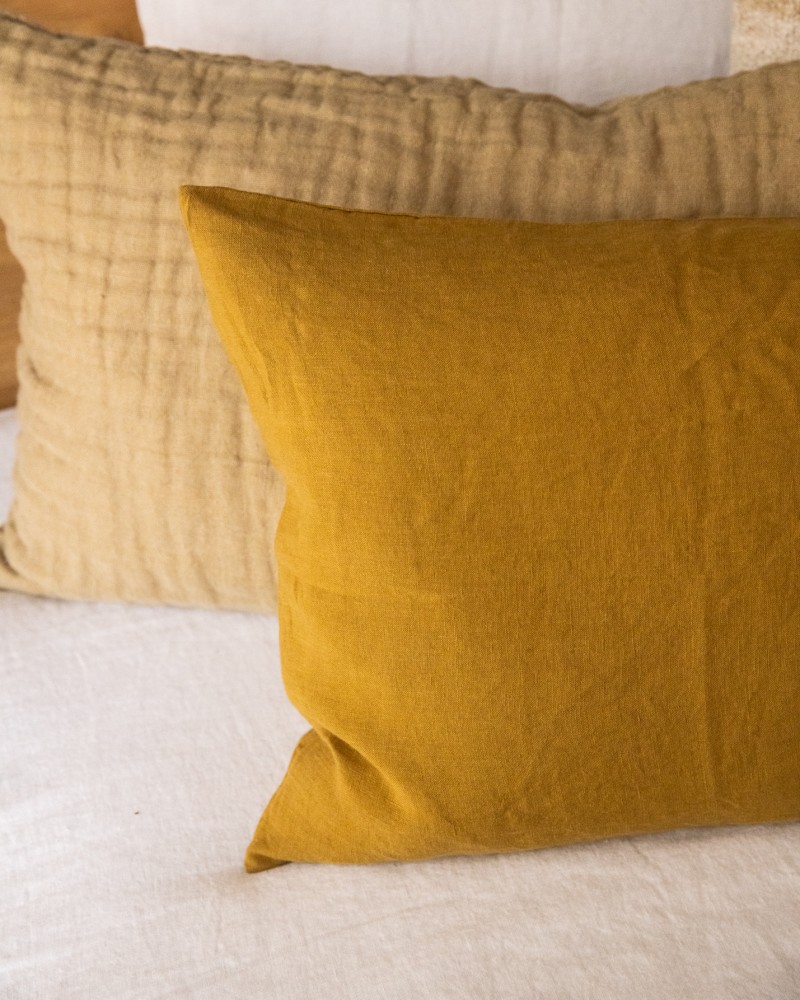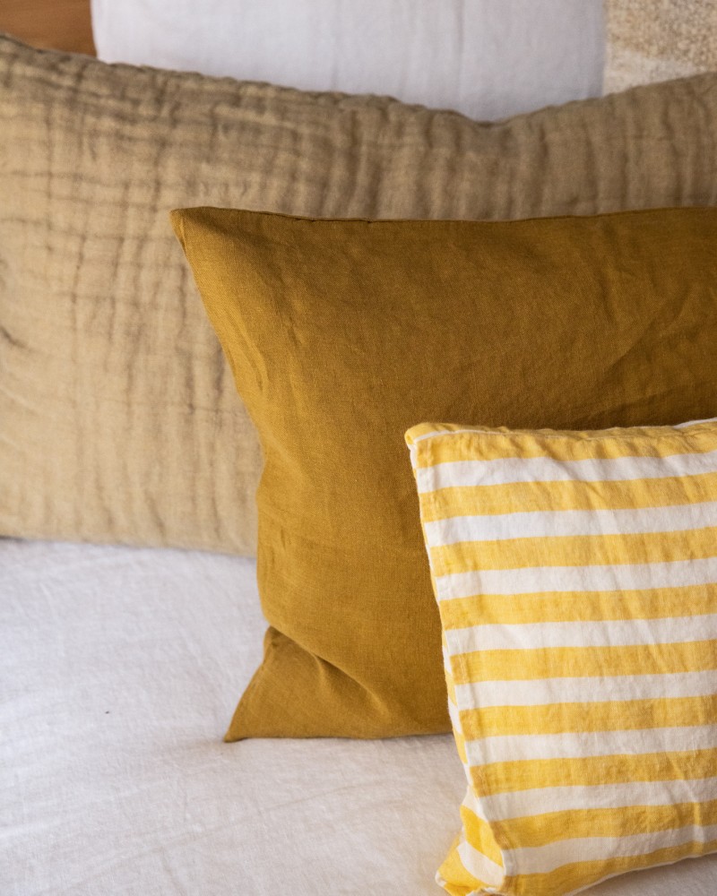 Cyrille Petibon utilise le lin lavé pour créer du linge coloré, doux et facile à associer. La housse de coussin rayé jaune en lin est produite en Europe avec un processus de fabrication eco-friendly. Respectueuse de l'environnement et colorée, elle est parfaite pour venir accessoiriser un canapé, un lit ou un fauteuil, seule ou pour venir compléter un ensemble de coussin. Dans une ambiance contemporaine ou plus bohème, elle viendra rehausser votre intérieur et le rendre chaleureux.