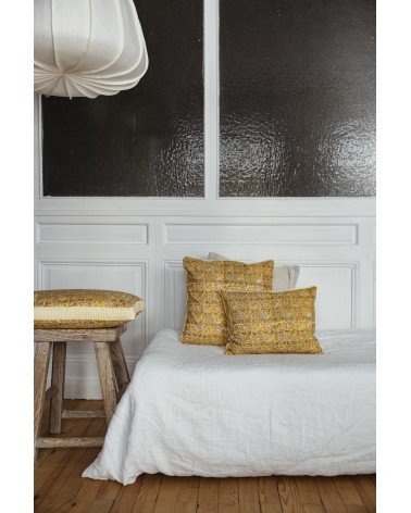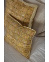 Ce coussin est imprimé grâce à la technique ancestrale indienne du block print. L'impression est faite à la main, ce qui apporte une vibration et un charme tout particulier au coussin. La richesse et la fantaisie de ce coussin est également apporté par le mélange des imprimés avec le biais coté. ce coussin existe en d autres formats : 45x45 cm et 40X60 cm. Il est en 100 % coton et est vendu avec son coussin de garnissage en plumes. Cette pièce est en série limitée.