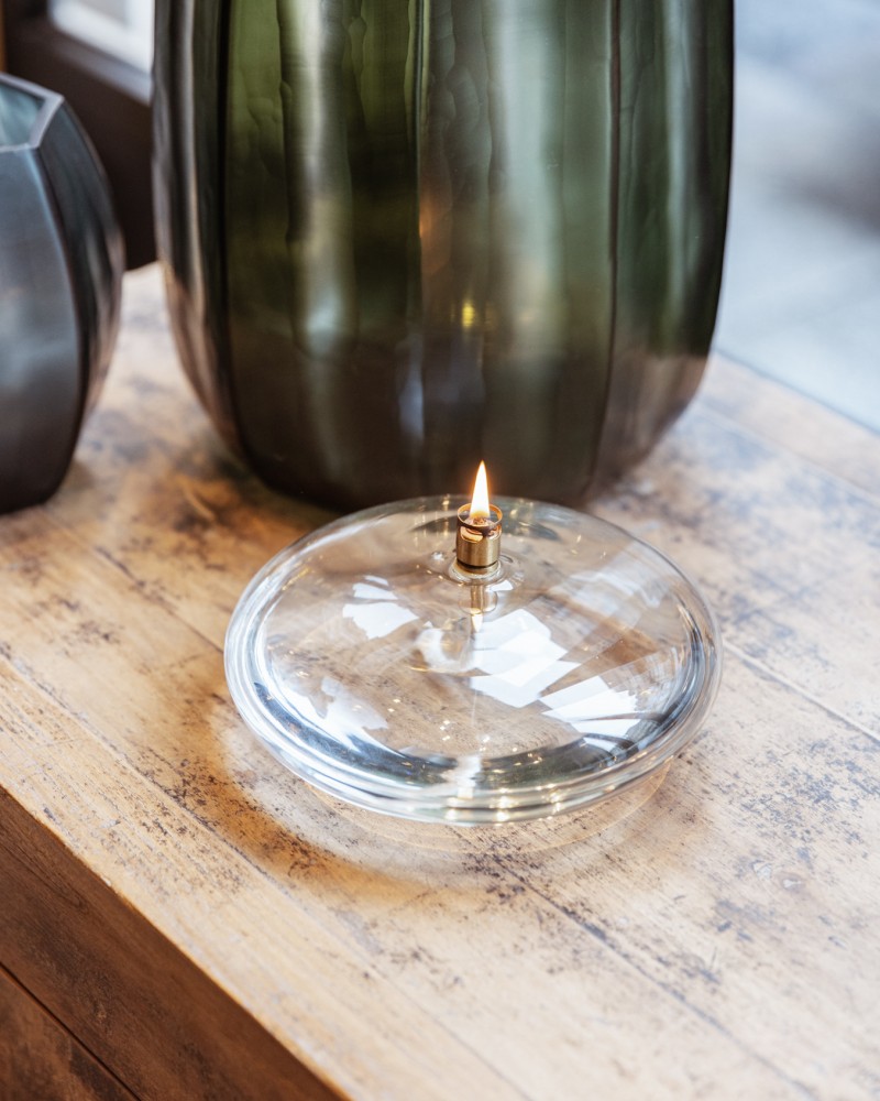 Entre objet de déco et bougie ! En groupe, la simplicité et la justesse du design de son verre transparent, ses formes rondes ou disques, ses tailles différentes facilitent une composition réussie! N'hésitez pas à mixer tailles et formes pour une harmonie que l'on ne retrouvera que chez vous. Elle est remplie de paraffine (vendue séparément) sans odeur. Son niveau descend très lentement sans laisser l'ombre d'une trace sur cette transparence ravissante et se remplit très facilement à l'aide d'un entonnoir offert. La mèche en fibre de verre s'imbibe de paraffine, et ne se consume que très peu.