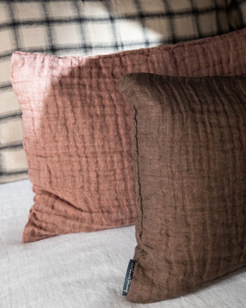 Ces coussins font partie de la collection Respire, dont le lin est issu d'une production française raisonnée, garantie sans OGM ni irrigation. Vous ne les quitterez plus !
