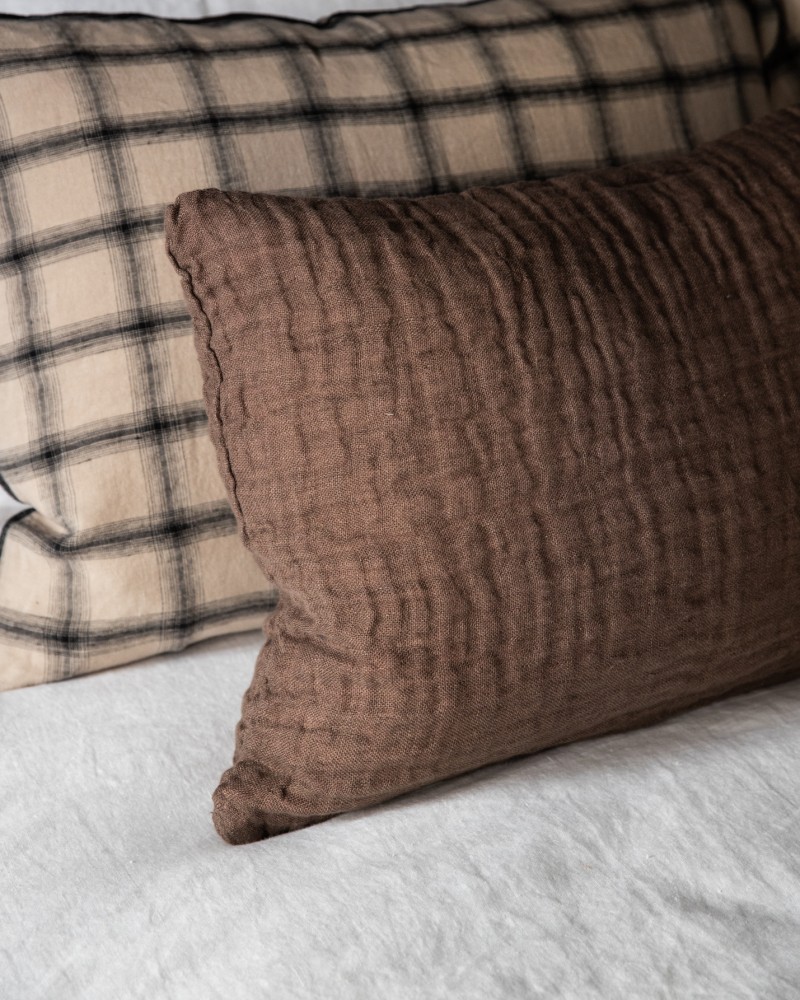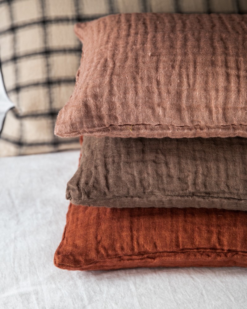 Ces coussins font partie de la collection Respire, dont le lin est issu d'une production française raisonnée, garantie sans OGM ni irrigation. Vous ne les quitterez plus !