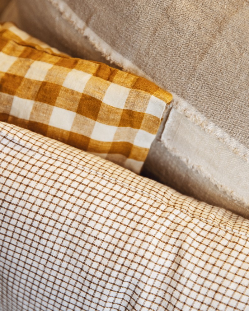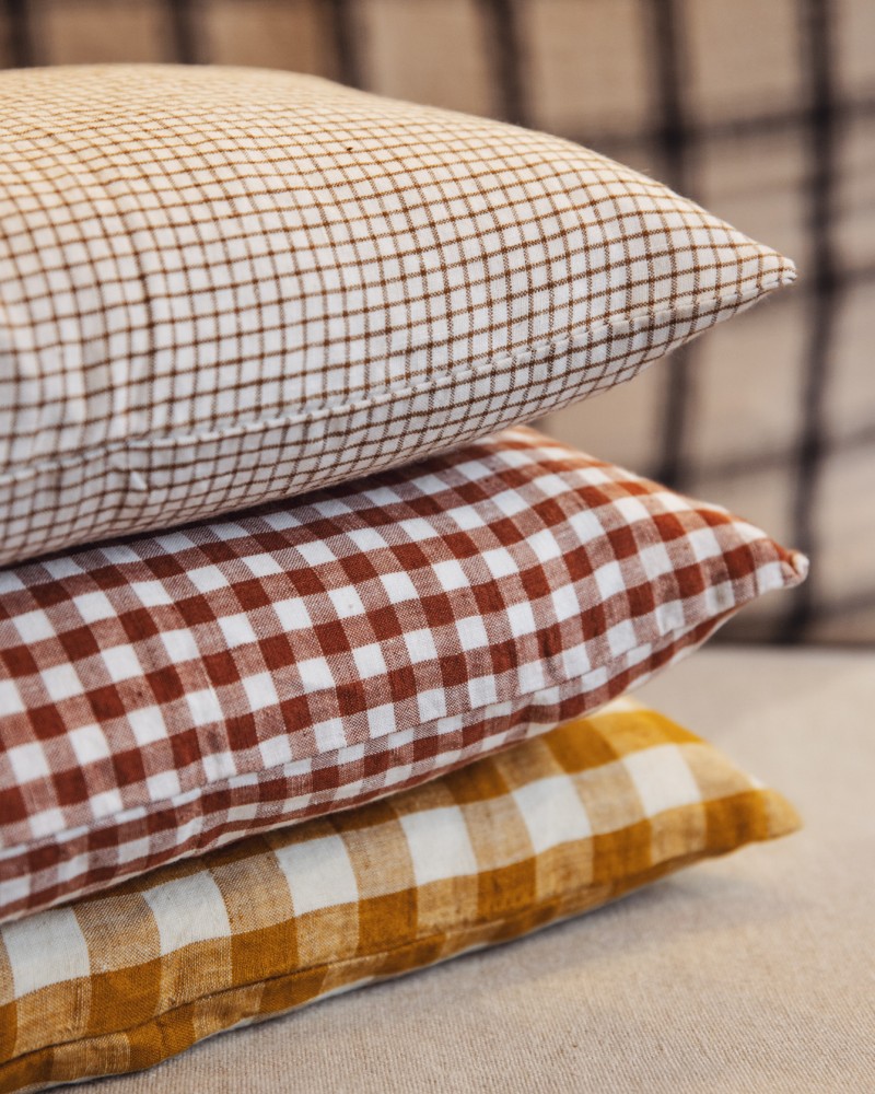 Housse de coussin en lin - Carreaux marron