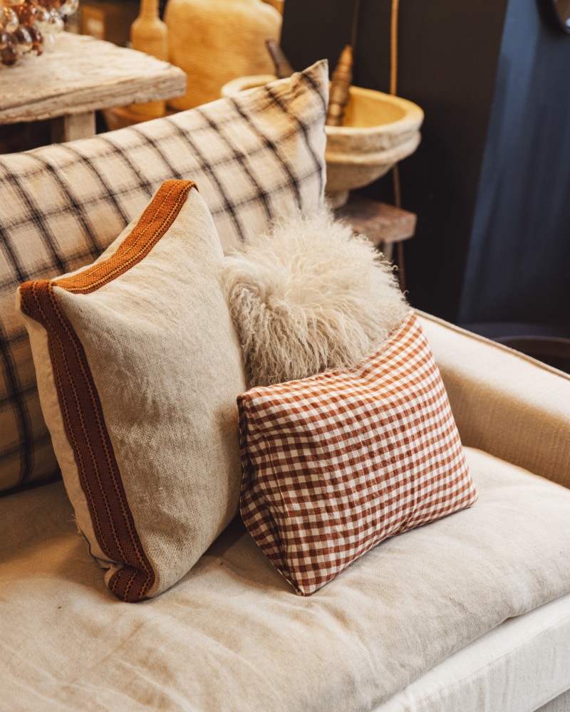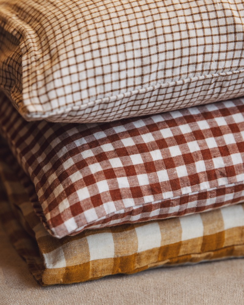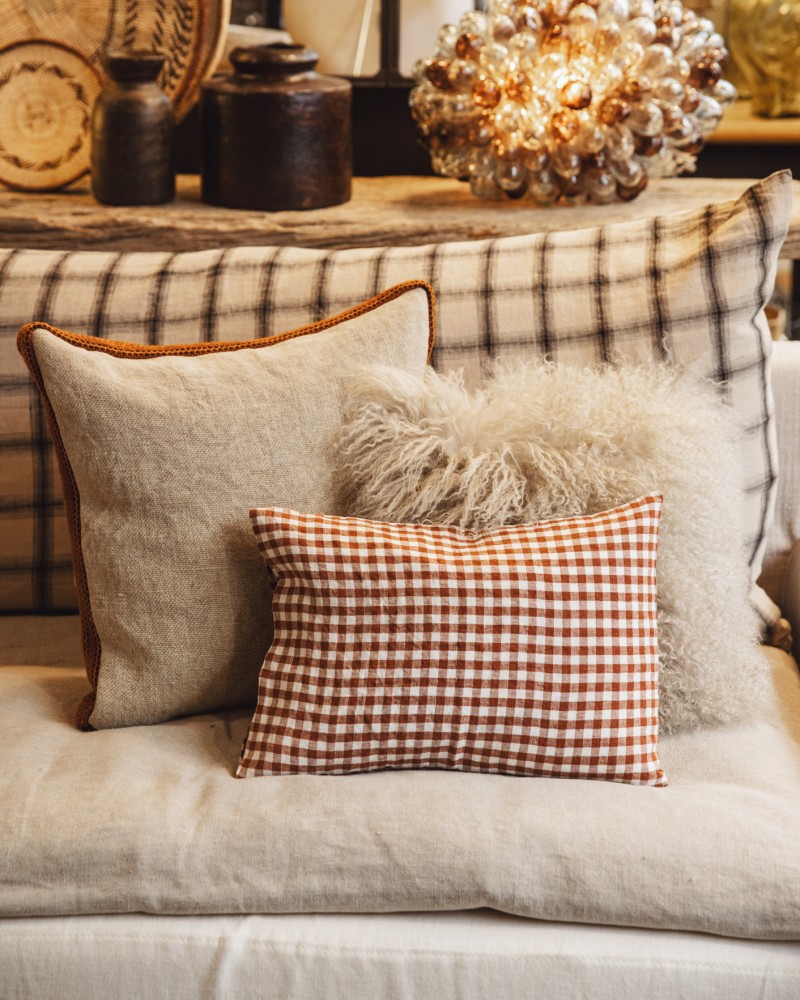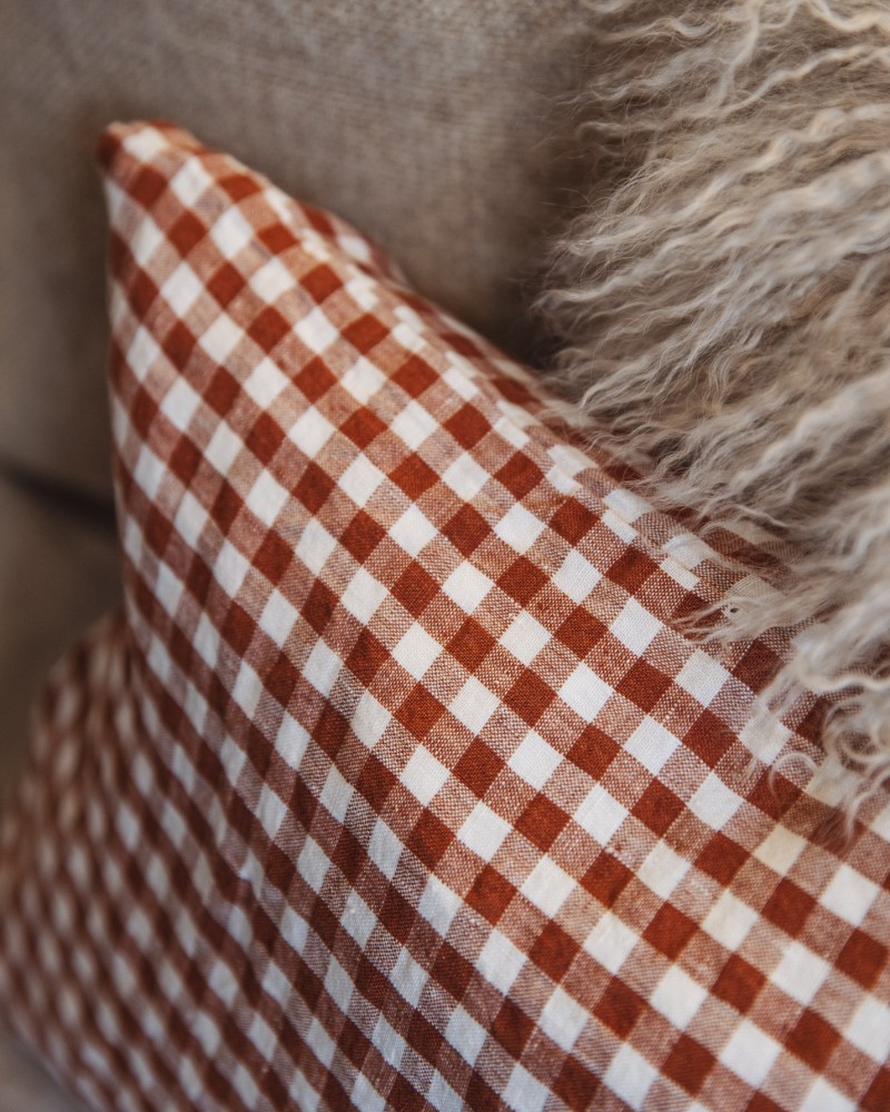 Housse de coussin en lin - Vichy brique