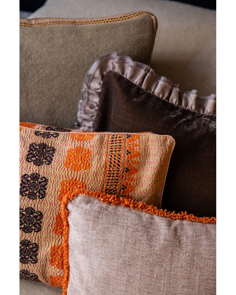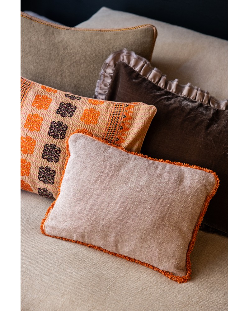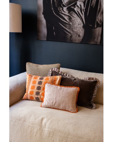 Le coussin Le Magicien séduit par sa finition frangée et son format rectangulaire, parfait pour apporter confort et élégance à un canapé ou un lit.