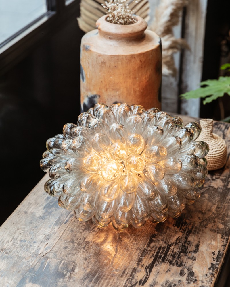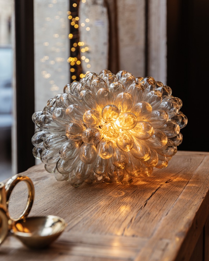 Poétique et singulière, la lampe Grappe est parfaite pour venir apporter un point lumineux à votre intérieur et le rehausser, à mi-chemin entre objet de décoration et pièce d'art.