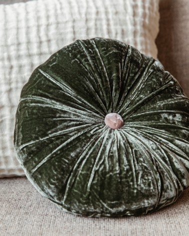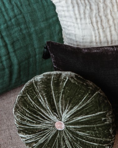 Béatrice Laval a imaginé pour Le Monde Sauvage un coussin rococo à souhait, où la délicatesse du velours de soie est mêlée à la douceur d'un coussin rond et plissé. Le bouton contrasté de capitonnage du milieu apparaît comme un véritable petit bijou. À mixer avec du lin ou du coton, il apporte douceur et raffinement à des matières plus épaisses et est parfait pour apporter une touche de couleur sur un canapé ou un lit. Un bonbon coloré à placer partout !
