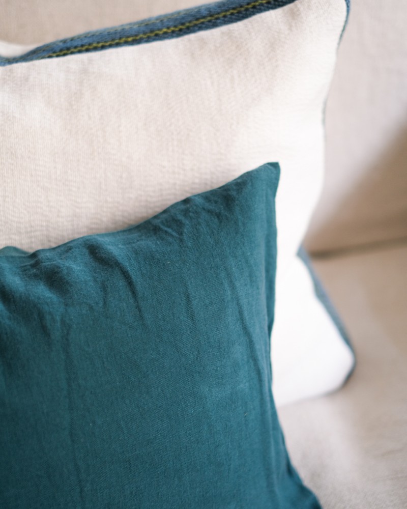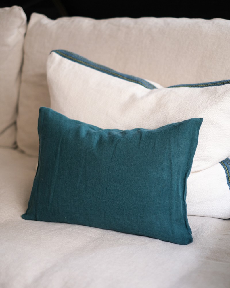 Cyrille Petibon utilise le lin lavé pour créer du linge coloré, doux et facile à associer. La petite housse de coussin en lin est produite en Europe avec un processus de fabrication eco-friendly. Respectueuse de l'environnement et colorée, elle est parfaite pour venir accessoiriser un canapé, un lit ou un fauteuil, seule ou pour venir compléter un ensemble de coussin. Dans une ambiance contemporaine ou plus bohème, elle viendra rehausser votre intérieur et le rendre chaleureux.