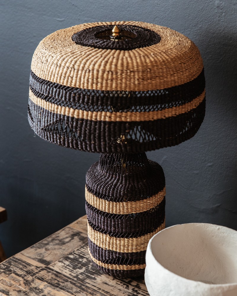 La créatrice Sara Efia met en valeur le savoir-faire du pays de ses origines et crée des pièces contemporaines qui rendent hommage à l’artisanat intemporel du Ghana. Poétiques et solaires, ces lampes à poser mélangent une empreinte visuelle affirmée et un jeu de matières et de couleurs singulier. Idéales pour venir ajouter une touche chaleureuse à un intérieur contemporain ou bohème.