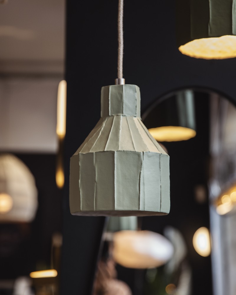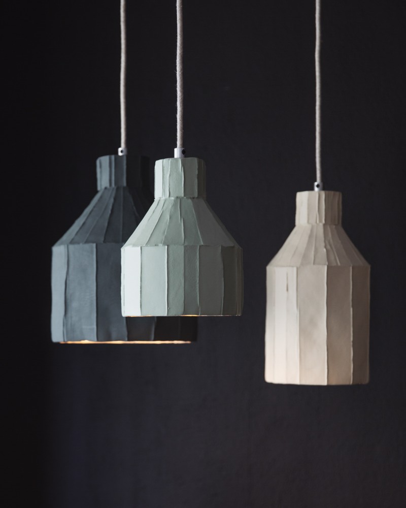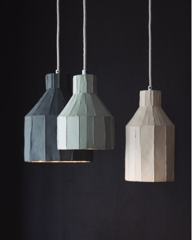 À mi-chemin entre œuvres d'art et objets de décoration, les suspensions imaginées et fabriquées par la designer italienne Paola Paronetto sont aussi belles qu'intrigantes. Réalisées avec une céramique obtenue par un mélange d’argile, de fibres de cellulose et d'eau pour obtenir cette matière unique appelée “Paper Clay”, elles sont si délicates que leur finesse rappelle celle d'une feuille de papier pliée.