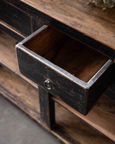 Orme massif avec patine naturelle - 5 tiroirs asymétriques, deux plateaux - 224x47x85 cm