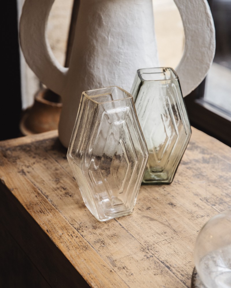 Ces vases en verre recyclé sont inspirés par l'architecture d'Amsterdam du 20e siècle. Ils s'intègrent parfaitement dans un intérieur contemporain ou classique.