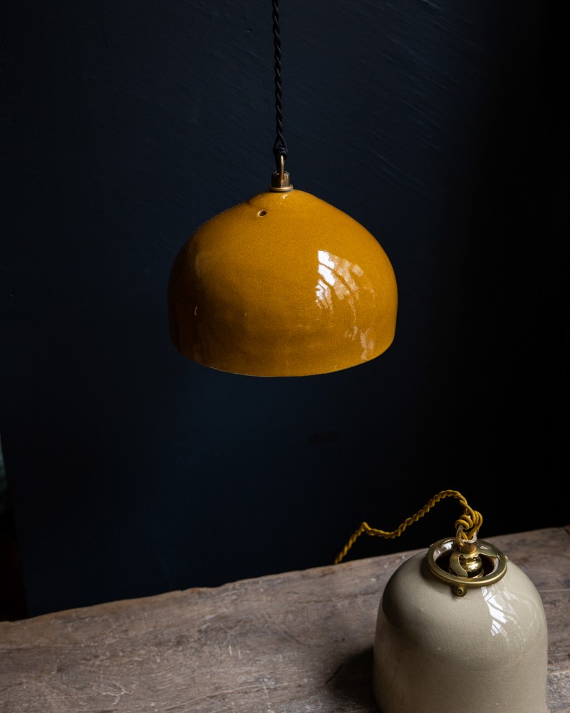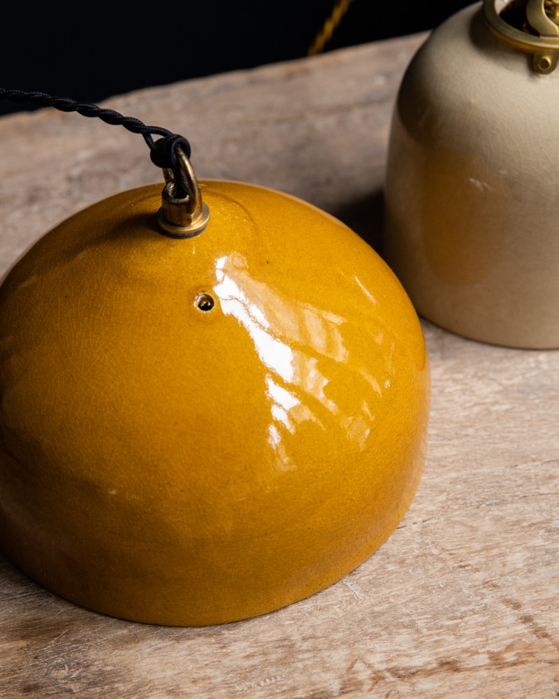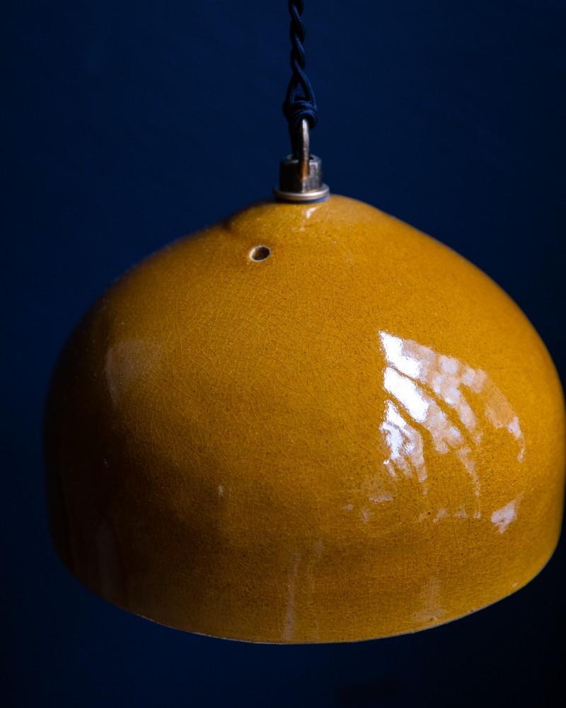 Coup de cœur Maison SERSK ! Poétiques et pétillantes, les Suspentes Keaton de Béatrice Markovitch en grès émaillé colorent et donnent vie à votre intérieur. La pureté de leur design met en valeur la beauté de leur matière, la céramique. Fabriquées à la main en France, ces lampes sont à mi-chemin entre objet d'art et décoratif. Leur intérieur doré diffuse une lumière douce et chaleureuse et vient rehausser leur couleur extérieure. La rosace pour le plafond est vendue séparément, vous pouvez la retrouver juste en dessous (référence 003816).