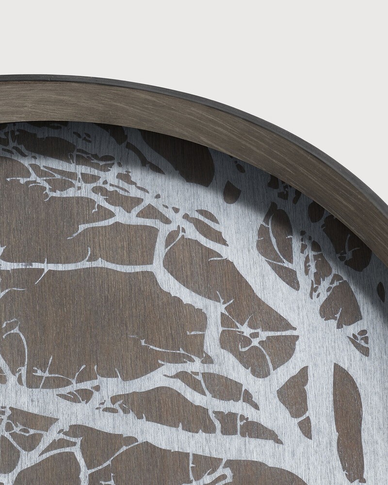 Une palette de couleurs discrètes s'associe à des motifs captivants inspirés par la nature et les voyages. Ce plateau en bois Tree expérimente l'équilibre entre la richesse des motifs et les tons feutrés pour révéler la beauté des sujets apparemment ordinaires. Ce faisant, cette collection capture l'essence de l'intemporalité.