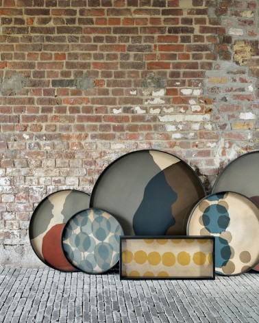 La collection de plateaux Translucent Silhouettes superpose savamment des pois avec les vibrations organiques sur une surface vieillie pour créer une sensation de profondeur et permettre à des combinaisons dynamiques de s'épanouir. Si le résultat global est audacieux, la collection possède une certaine légèreté véhiculée par les encres et les pigments délicats.