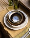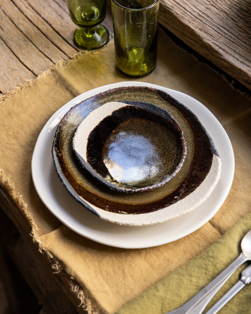 Beauté de l’imperfection, cette collection inspirée de la philosophie japonaise Wabi Sabi célèbre la pureté et la simplicité de l’artisanat. On aime le jeu de matières, les contrastes de brun, vert et noir, l'irrégularité des textures du travail fait-main, pour une vaisselle à la limite de l'art!