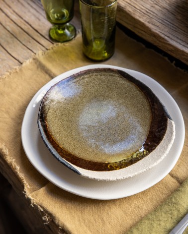 Cette collection est entièrement faite-main avec passion, dans une manufacture française en Drôme. La température de cuisson est à 1280°C, ce qui confère à la vaisselle une haute résistance et une grande durabilité. Les pièces peuvent présenter de légères variations de couleurs et de forme. Chaque céramique est unique, c'est la magie de l'alchimie de la cuisson grand feu.