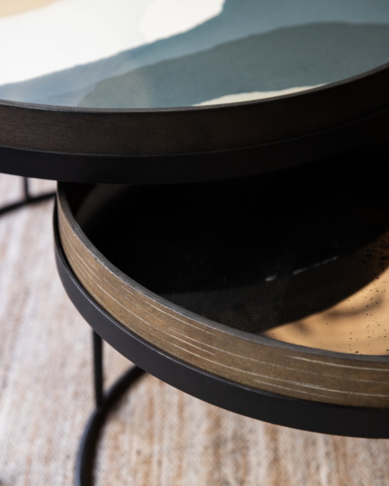 Petit plateau finition verre pour les structures des tables basses gigognes.