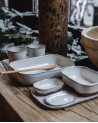 Pour répondre à ce nouveau style de vie, Merci a conçu, en collaboration avec Serax, une série de petits plateaux et coupelles fonctionnels, inspirée du célèbre ‘American Modern Dinnerware’ de Russel Wright et du ‘bento’ nippon traditionnel.